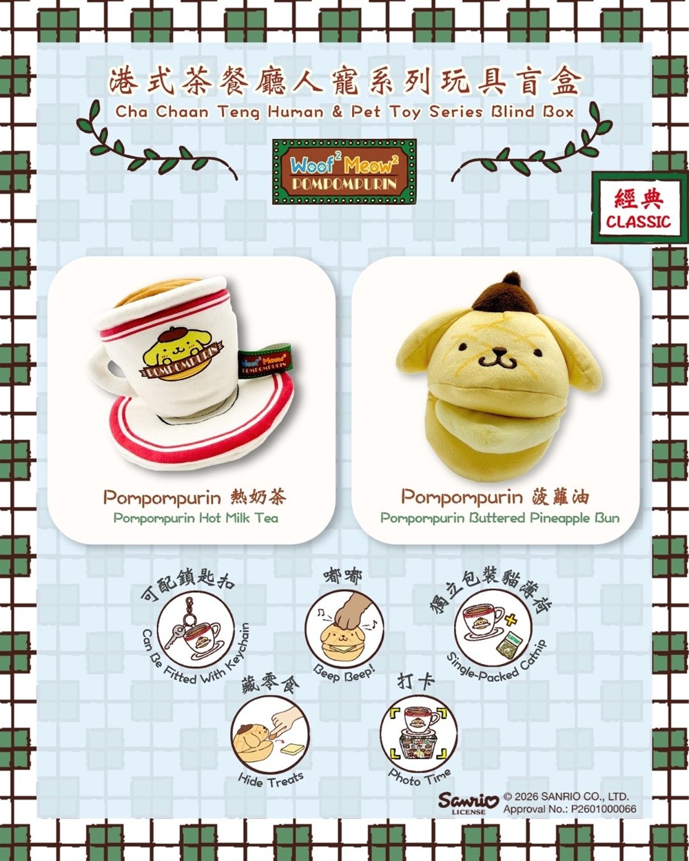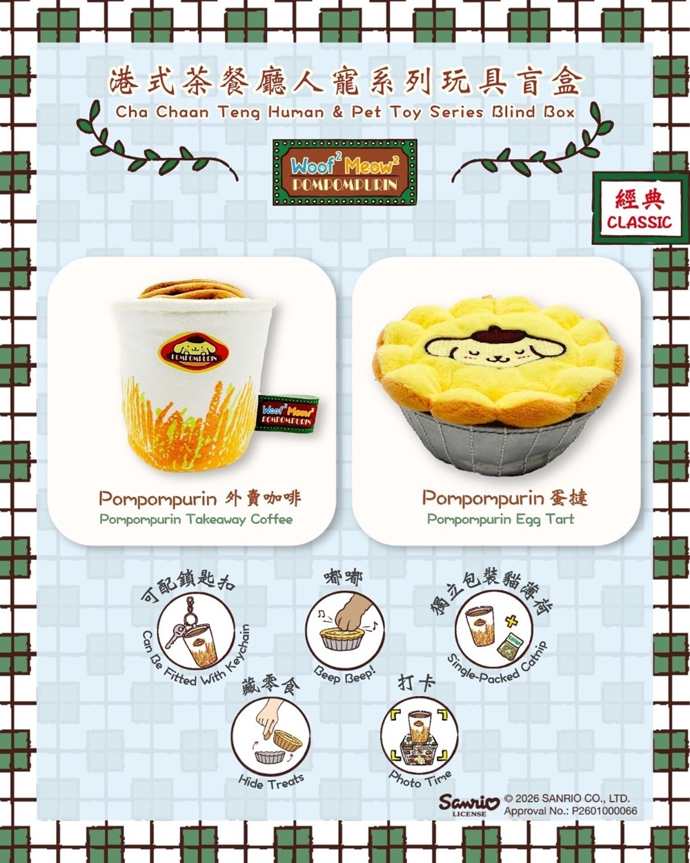 These interactive nosework toys transform your favourite ‘Cha Chaan Teng’ food like French Toast and Egg Tart into adorable pet toys! Not only can you hang them as bag charms they also have pockets and “beep-beep” sound devices for tons of fun with your pets!