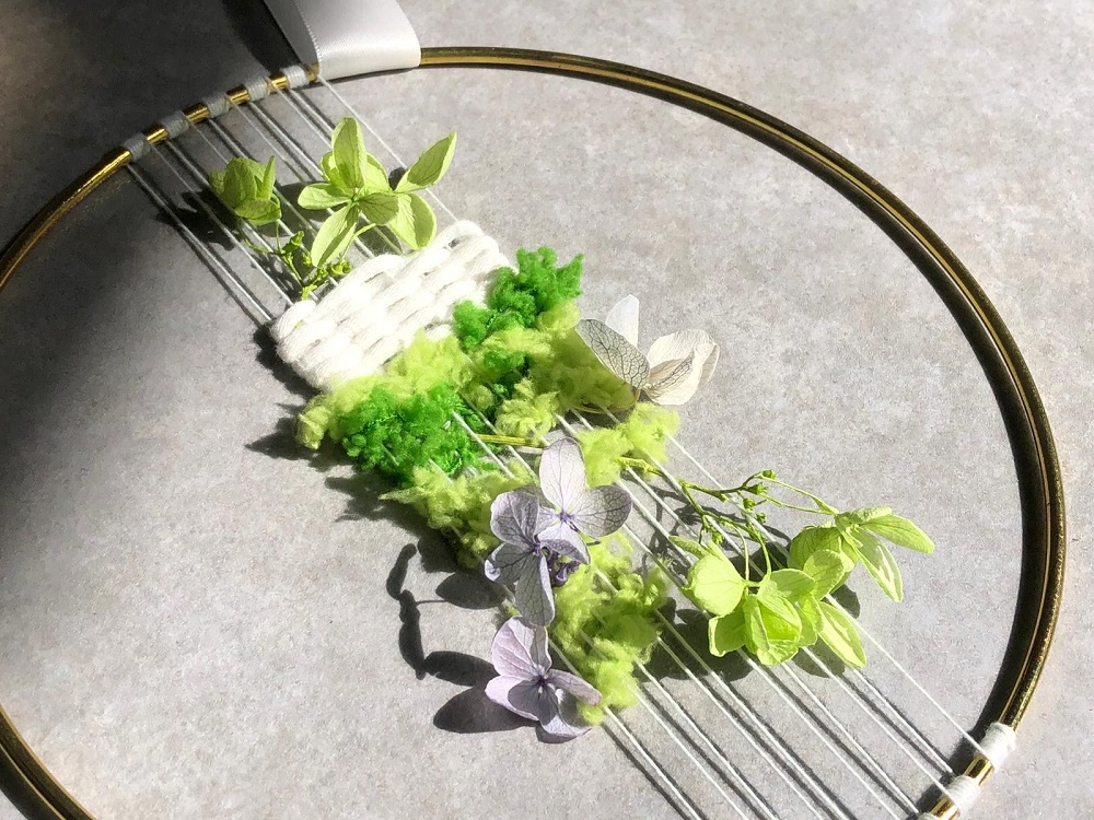 You will make one tapestry or one Ikebana wreath with up-cycling materials.