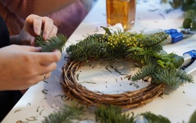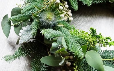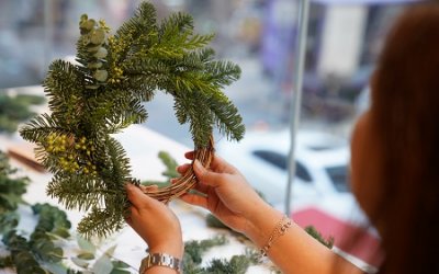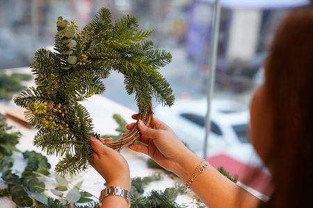 Simple Elegance Christmas wreath for festive season! We are using 100% natural plants, flowers and dried fruit to decorate the the wreath. Create your own wreath and bring it home to decorate the door as a warm welcome to your friends at the party!