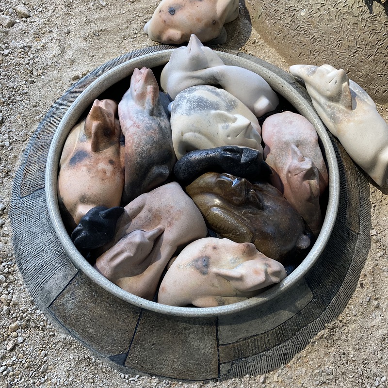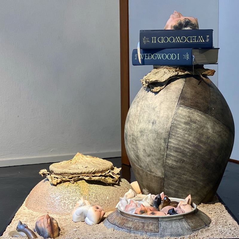 Different Hakka families, even from the same region, have their own unique brewing techniques, which are often accompanied by many interesting stories. Ray was very keen to discover these stories. Among the numerous techniques, he found that one of the steps, ‘roasting wine’, was very similar to ‘smoke firing’ in ceramics. One way of ‘roasting wine’ was to apply mud onto the external surface of the wine pot, burying the pot in straw and husks, and then mellowing the wine by firing it to medium heat. With reference to these various Hakka techniques, Ray applied the concept of ‘wine brewing’ to ‘clay/mud brewing’, introducing elements of fermentation, glutinous rice, wine roasting, yellow wine dishes and so on, and creating a new series of ceramic works and wine vessels. He hoped to arouse public interest in Hakka culture through his work, and encouraging others to share their own wine brewing experiences, recipes and stories.