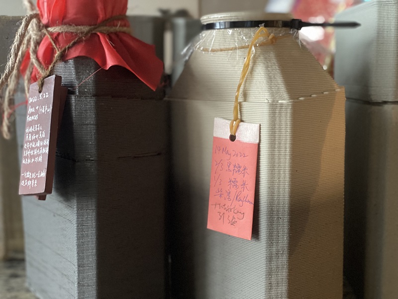It is increasingly difficult to brew wine using traditional huge ceramic wine urns due to the lack of space in the home. Some Hakka families living in the city would replace these urns by using containers that are readily available and could be easily stored, such as glass bottles. Wine brewing is not popular among younger Hakka people as it is considered a handicraft of bygone generations. He reflected on whether innovations and traditions could coexist. Ray collaborated with an up-and-coming ceramic artist Silvester Mok and used 3D printing technology to create a modern ceramic wine urn, hoping that the tradition of Hakka wine-brewing could have a place in this age of innovation, raising the level of interest and participation of the new generation, and re-establishing Hakka wine brewing as a fashionable heritage. Ray has specially designed an interactive App for audience to submit their wine cup designs and to share their brewing recipes and tasting notes. He may conduct private guided tasting of these wines at the exhibition.
