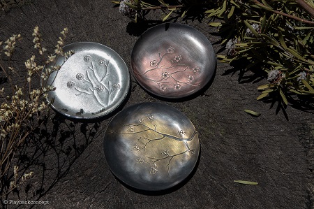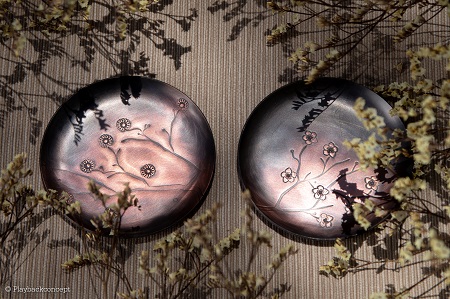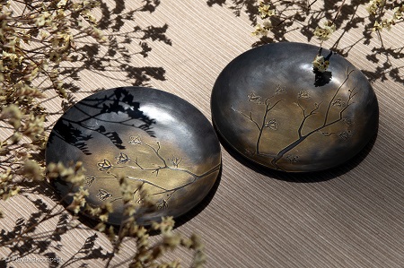 由纯铜和纯锡锻造而成,把金工融入于香道。十二月份之花,象徵着品香时含蓄的气味。