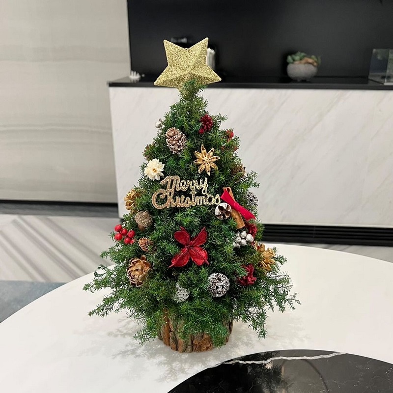 Xmas tree are made with Japanese preserved cypress, can keep for at least a year or even two to three years under a dry environment.