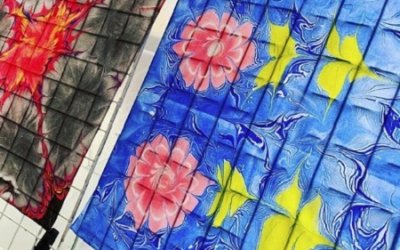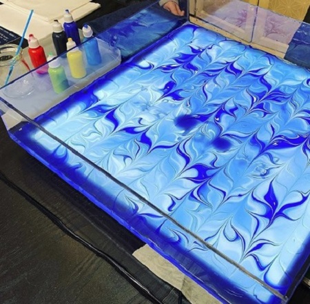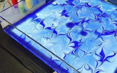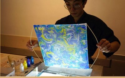 The practice of Suminagashi remains much the same today, although now artists also use acrylic paints that flow and spread over a liquid water surface.
