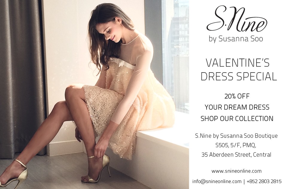 Come visit our S.Nine by Susanna Soo boutique (S505) at the PMQ to find your perfect dress. All dresses will have 20% off from today onwards till the end of February.