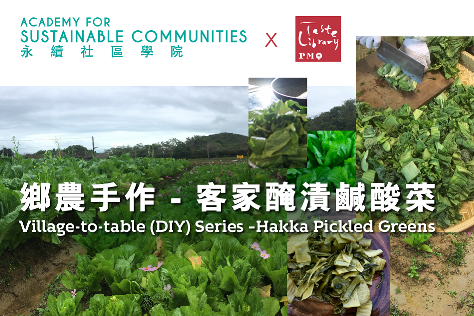 客家人是香港最早的原居民之一,而他們的飲食文化亦對香港人影響極深。為了承傳及推廣香港原始味道,PMQ味道圖書館及永續社區學院聯手舉辦「鄉農手作 – 客家醃漬鹹酸菜」工作坊。是次活動,我們邀請了荔枝窩村民來教大家利用當造時蔬,用最傳統的方法親手醃製鹹酸菜。除了瞭解客家飲食文化和製作鹹酸菜之外,村民和味道圖書館策展人Andy亦會示範利用鹹酸菜做出一道傳統及一道創新的菜式讓參家者一同試食,讓參家者更能體驗本地食菜的可能性。