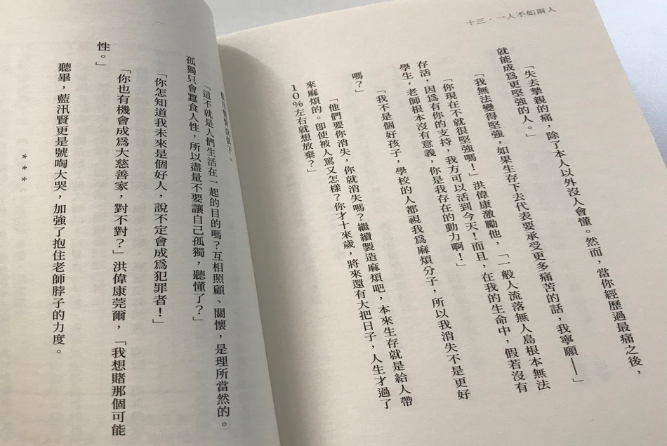 這是一個相當反映了實況的校園故事,有對教育制度的控訴、有對師生相處關係的反思,就讓我們讀完了故事,回到現實想想:為何身處學校中,卻猶如置身孤島上?
