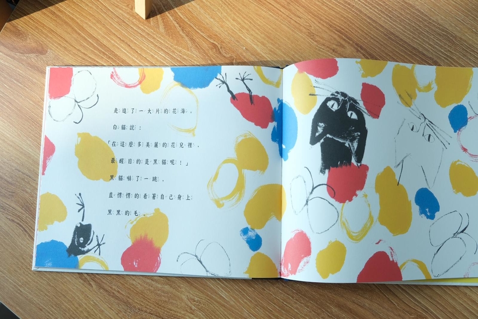 But when two cats walked into a sea of colorful flowers, black became most eye-catching. We have been measured by appearances, grades, money, abilities, etc. since we were young. We often forget what the "black" unpleasant things. These things are actually unique to us all. When there is darkness, we see light. We need each other and learn to be each other's needs.