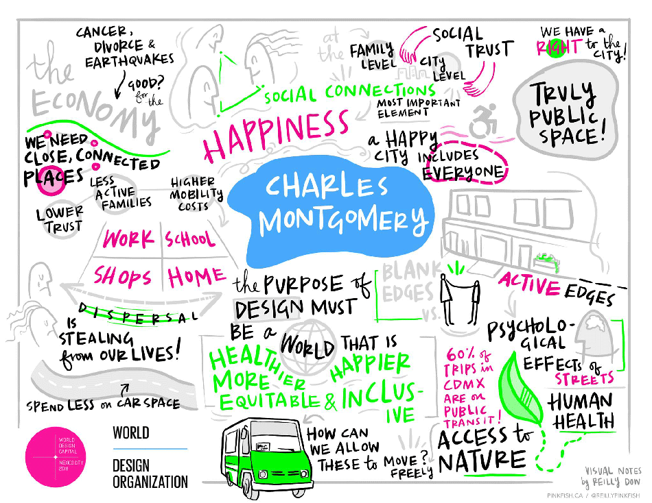 Charles Montgomery based their studies on urban planning on “emotions,” as well as looking at the work done in neuroscience and psychology, applying anthropology into the field of urban design.