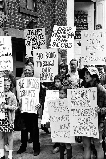Jane Jacobs opposed the reconstruction plan of Greenwich Village by Robert Moses, preventing the construction of highways in the area.