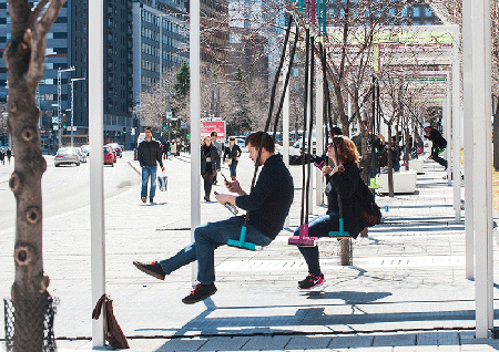 Without a doubt, vibrant colors are soothing and pleasing to the eye. Art and design studio Daily Tous Les Jours from Montreal and architecture studio 100 Architects from Shanghai often use delicate colors through their works to bring people joy. In 2011, Daily Tous Les Jours created a gigantic interactive instrument called the “Musical Swings” which added "fun and play" elements into an ordinary bus stop. The interface is pretty simple, the higher you swing, the higher the note it generates, and if you play with others, you will get some musical harmonies. Due to its popularity, “Musical Swings” has been touring in 9 cities around the world to date.