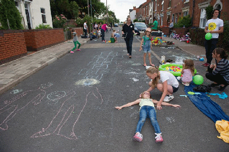Birmingham community “Space Makers” closed six lanes for an afternoon, and transformed them into a community playground called “Play Out”.