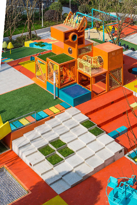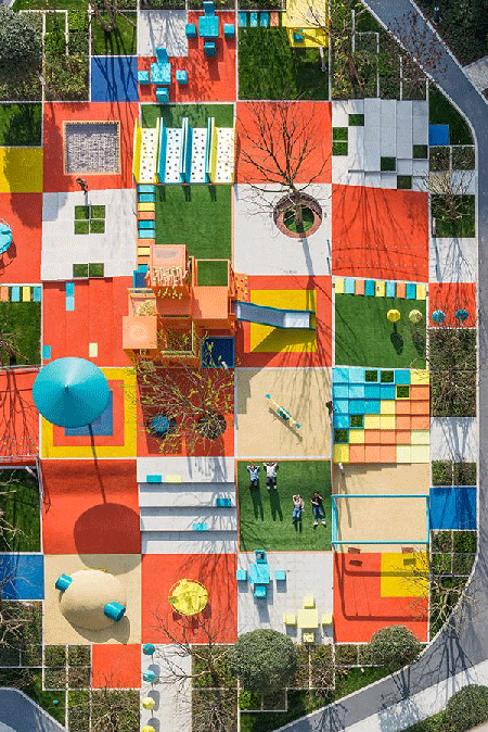 100 Architects founded in Shanghai, currently led by three partners – Javier Gonzales (Spain), Marcial Jesus(Chile), their philosophy in designing public spaces are utilizing “street architecture” and “urban intervention” embedded with the use of vivid colors. Their latest project is called Pixeland, a multifunctional public space with a combination of a smaller functional pixel. Each 5m X 5m “pixel” has its independent entity, such as lounge resting area, sloped lawns, sliders, merry-go-round, and small amphitheaters for gatherings, which are ideal for the joy and entertainment of adults and younger visitors.