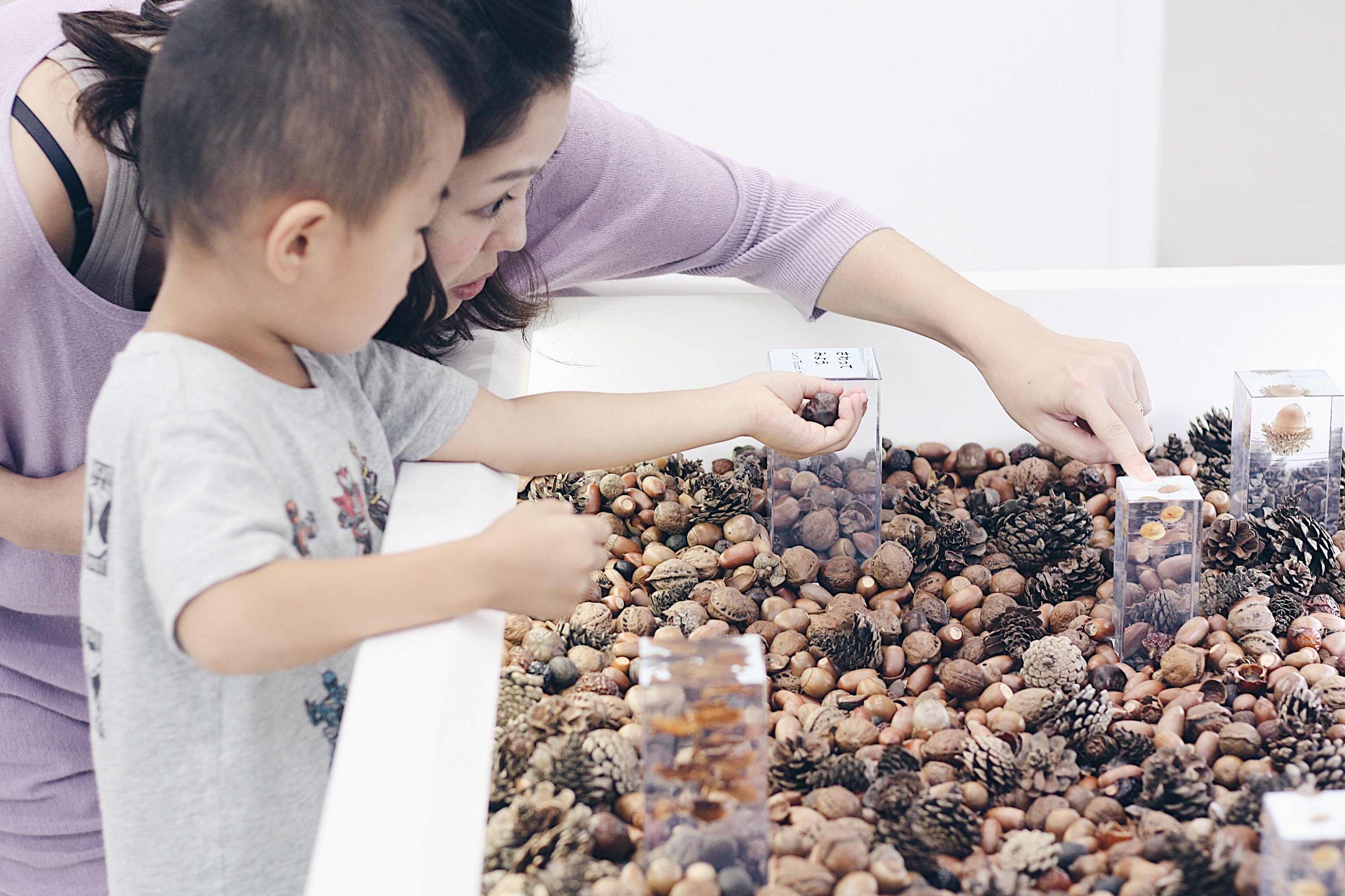 The extremely orderly display inside the cabinets draws the focus and the set-up of footsteps shows the detail-mindedness for children. Other than the indoor exhibition area, visitors are even encouraged to hand-pick fruits and seeds outdoors in the mountain to experience the authenticity of Nature.