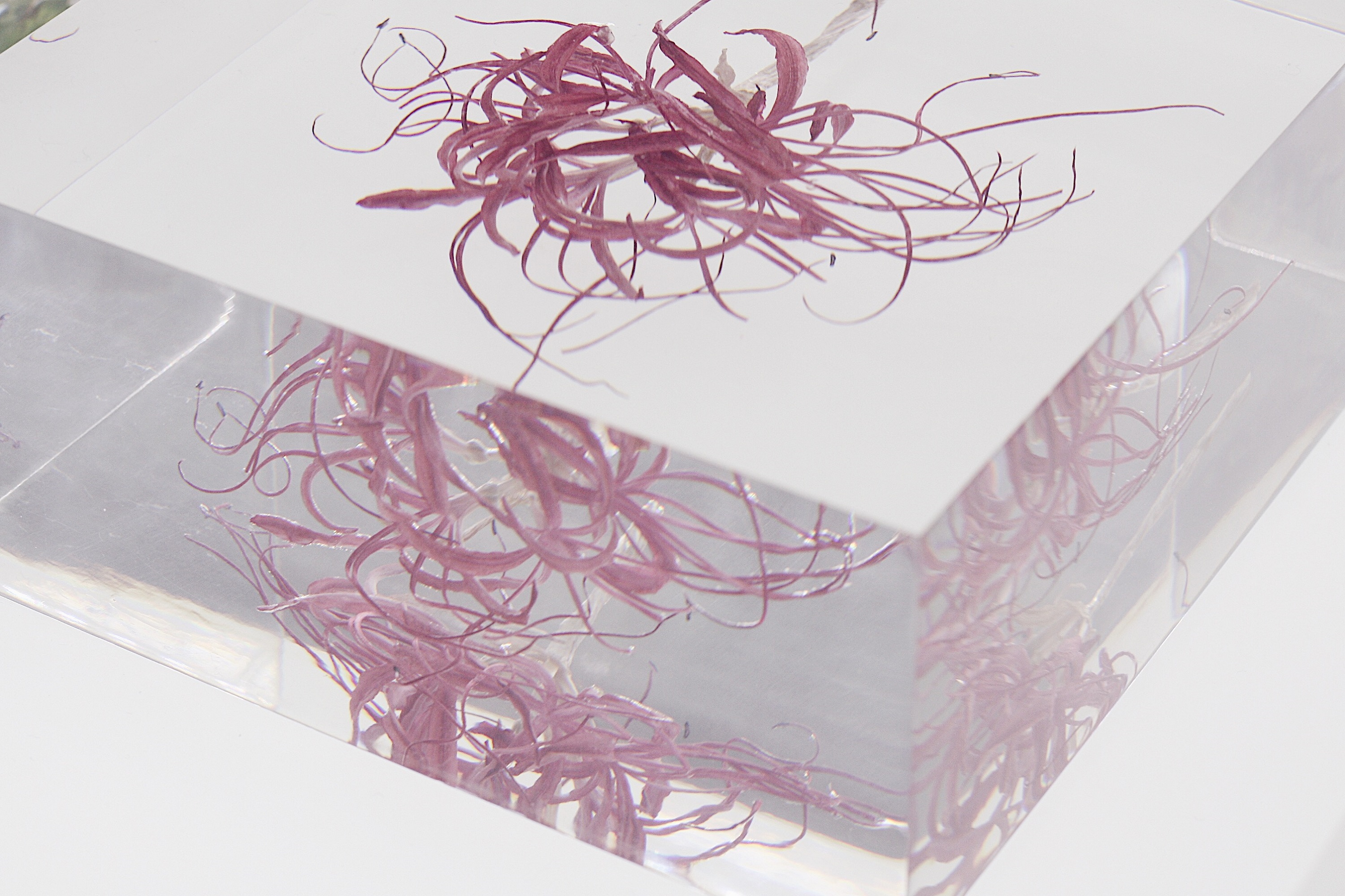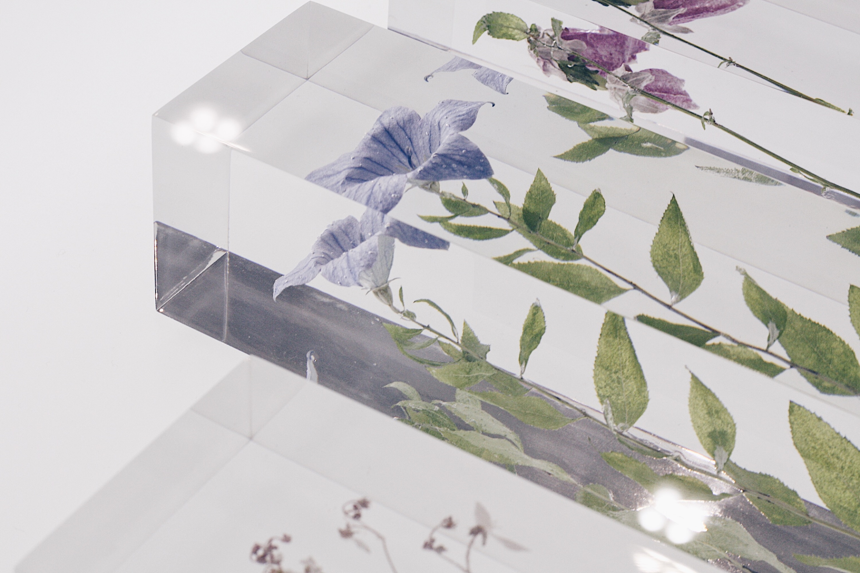 In its pure germ-free whitewash, the exhibition area of the museum features sixteen transparent glass cabinets inlaying with resin the specimens of flowers and plants.