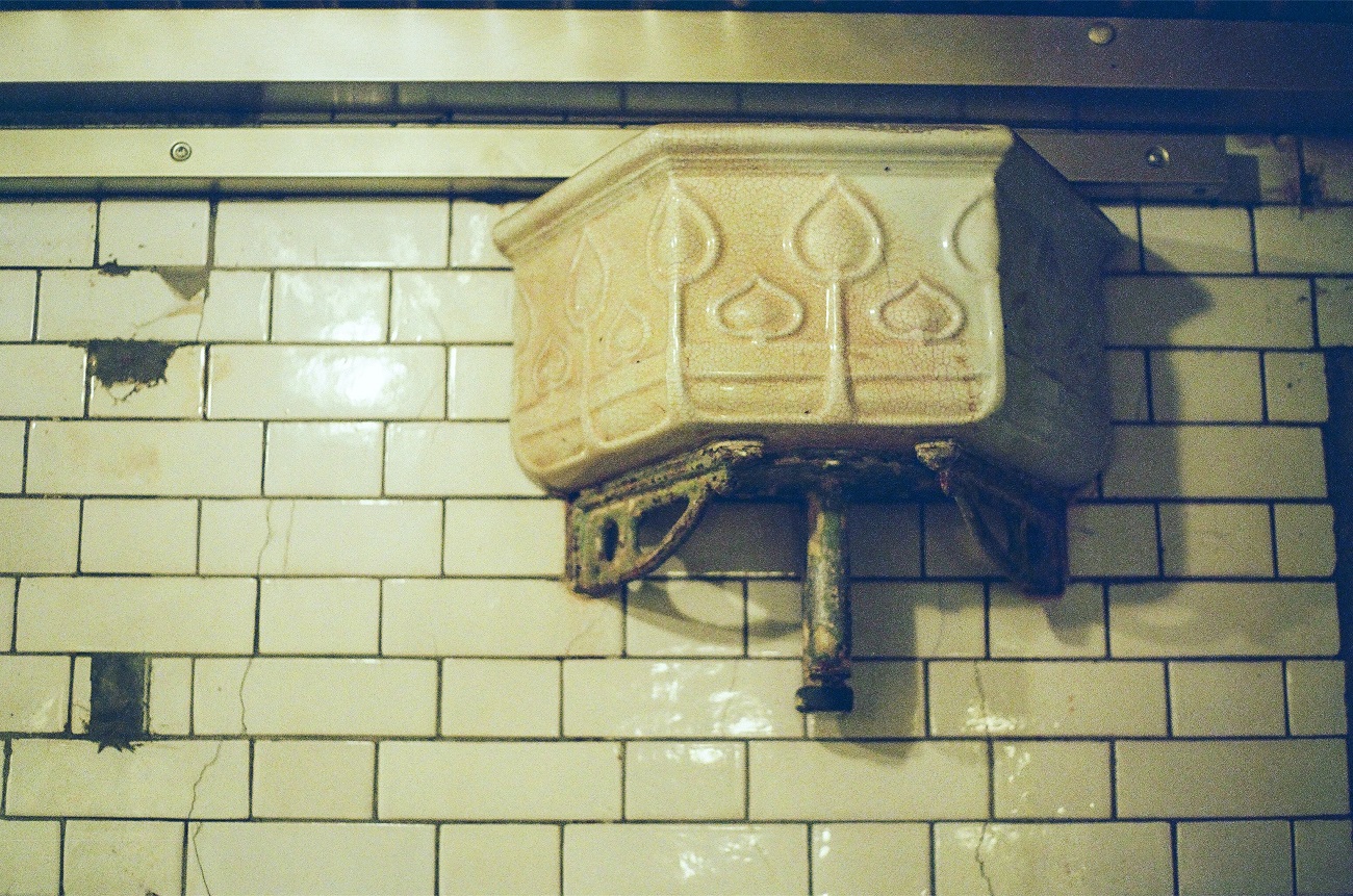 1890年生產的階磚,現在已成為珍貴古董,於是絕大部分留下來,哪怕經已斑駁留痕;當年由英國Doulton & Co(即現在非常著名的Royal Doulton)生產的沖廁水箱,是優質耐用的瓷器,同樣捨不得拆掉,尿槽驚人地簡單裝上木枱,成為一面能夠挑戰你接受程度的卡座,效果耐人尋味地好玩,更是只此一家的設計,自此成為咖啡店最為人津津樂道的焦點。