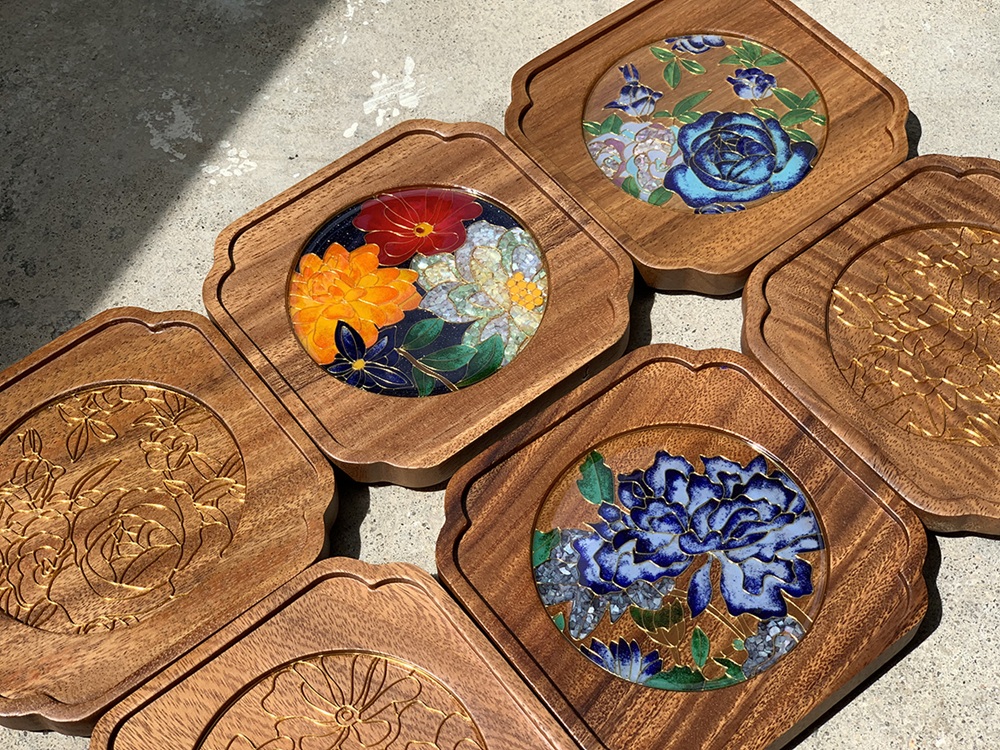6) 掐丝珐瑯及螺钿胡桃木杯垫工作坊