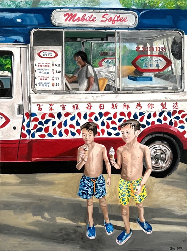 A local artist painting about local topics, social and cultural observations. Her paintings reflect on heritage, culture, identity, and transformation.