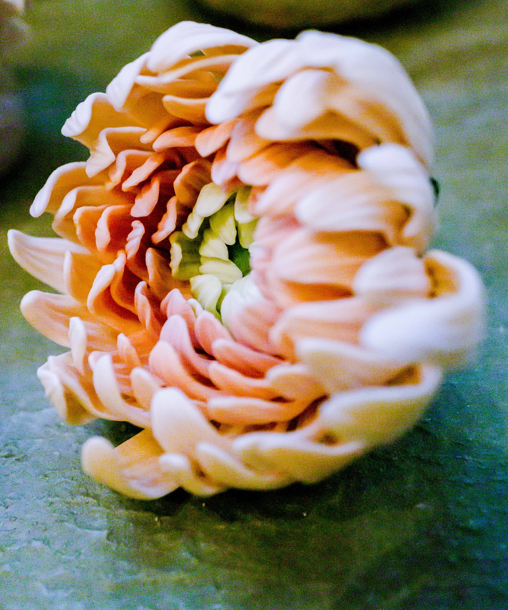 This is a very delicate structure with countless textured petals in various sizes. The technique of installing them without losing the shape of the entire bloom requires real patience and steady hands.